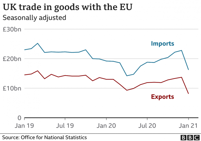Αυτή είναι η εικόνα του εμπορικών ανταλλαγών. Όπως διαπιστώνει και το Fortune.com. «Ίσως κάποιο καλό θα προκύψει από το Brexit, κάποια στιγμή. Αλλά προς το παρόν, οι βασικές ασυμφωνίες του προκαλούν…χάος».