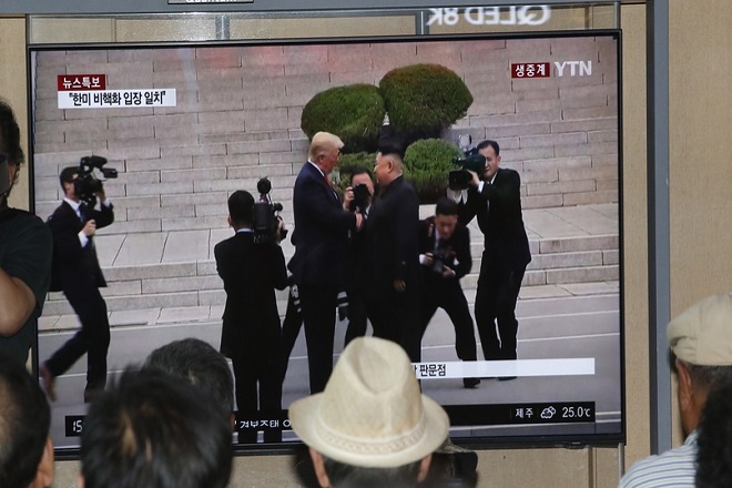 Ο πρόεδρος των ΗΠΑ Ντόναλντ Τραμπ βρέθηκε το πρωί της Κυριακής στην Αποστρατιωτικοποιημένη Ζώνη (DMZ) ανάμεσα στη Νότια και τη Βόρεια Κορέα, για μία ιστορική συνάντηση λίγων λεπτών με τον Βορειοκορεάτη ηγέτη Κιμ Γιονγκ Ουν. Είναι η πρώτη φορά που εν ενεργεία Αμερικανός πρόεδρος εισέρχεται στο έδαφος της Βόρειας Κορέας. Κατά την συνάντηση με τον Κιμ Γιονγκ Ουν ο Τραμπ δήλωσε: «Είναι μία σπουδαία ημέρα για την ανθρωπότητα». Από την πλευρά του, ο Κιμ, χαρακτήρισε την κίνηση του προέδρου των ΗΠΑ «θαρραλέα και αποφασιστική».