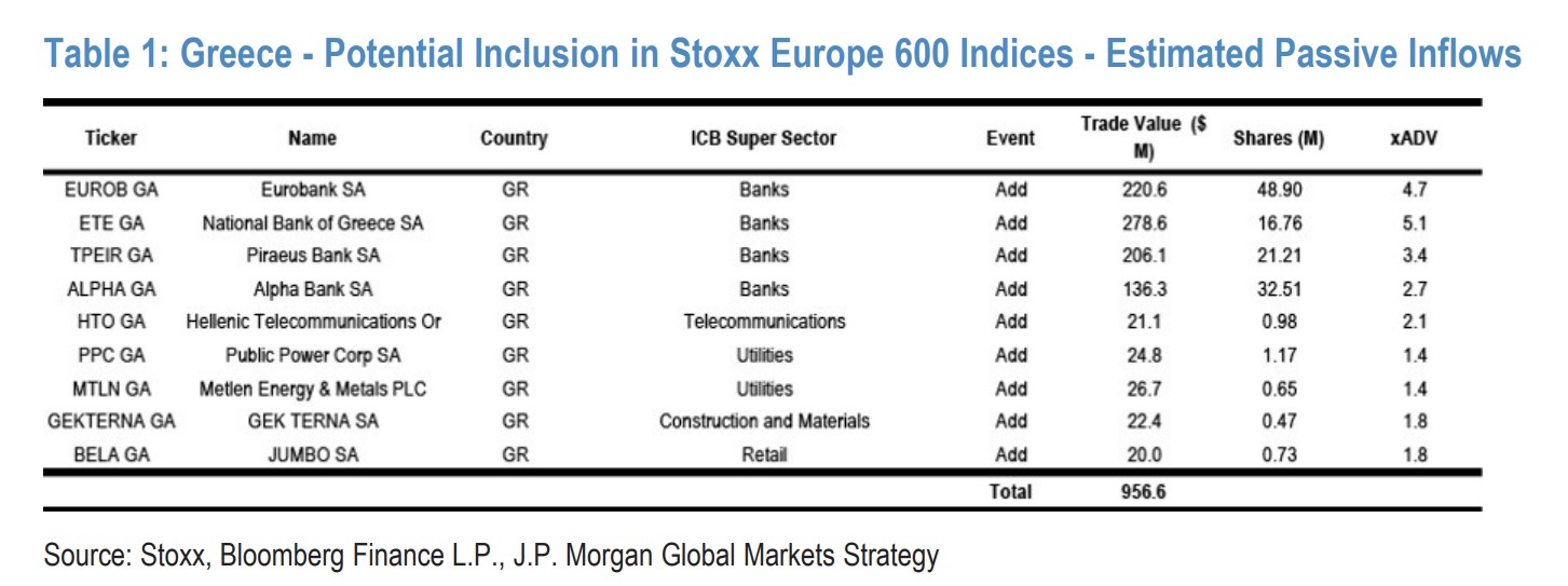 Μάλιστα, σύμφωνα με την JP Morgan, στον απόηχο αυτή της αναβάθμισης οι εισροές θα φτάσουν σχεδόν το 1 δισ. δολ. (957 εκατ).