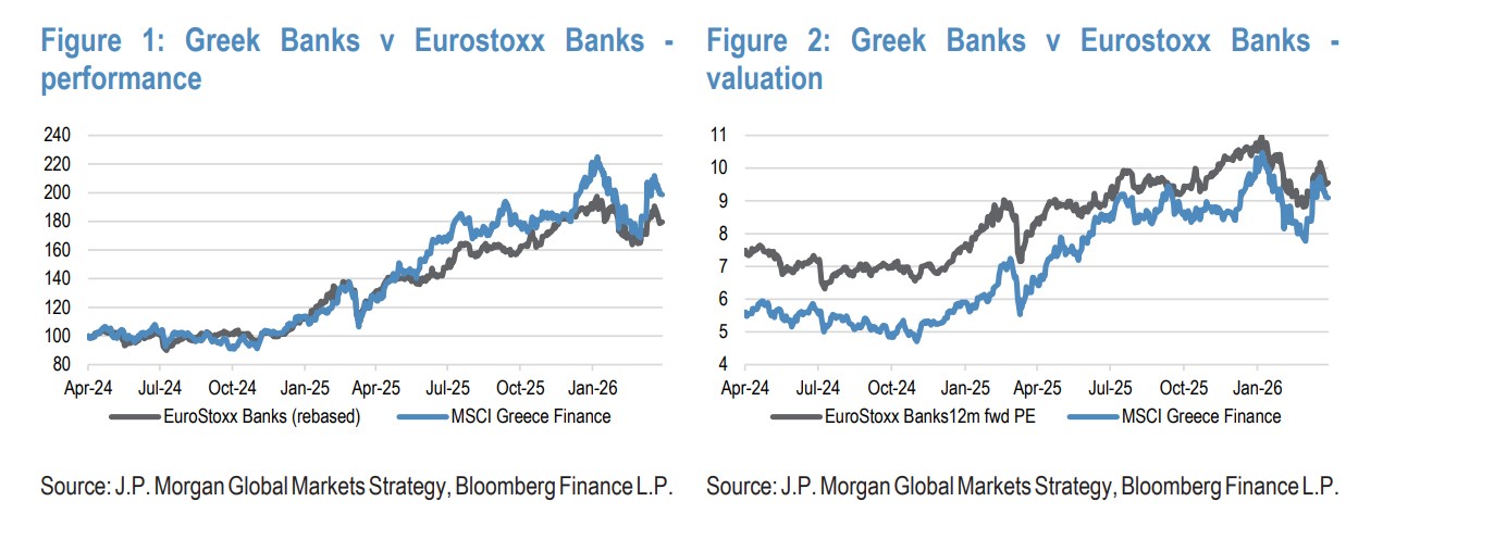 Ελλάδα «ψηφίζει» η JP Morgan για το 2026, προβλέποντας εισροές 1 δισ. δολαρίων για το ελληνικό χρηματιστήριο τον ερχόμενο Σεπτέμβριο, λόγω της αναβάθμισης από τη Stoxx, που ευνοεί κυρίως τις τράπεζες.