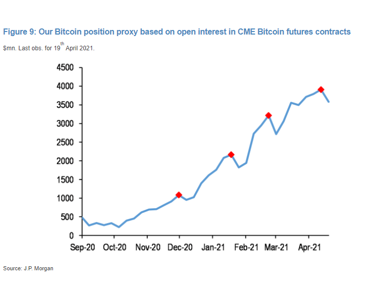 Είναι πολύ πιθανό ότι πίσω από τις long θέσεις που έχουν ανοίξει τις τελευταίες ημέρες στα συμβόλαια μελλοντικής εκπλήρωσης που συνδέονται με το Bitcoin να βρίσκονται οι CTAs (Commodity Trading Advisors), όπως επίσης και πίσω από την πτώση που καταγράφηκε τις τελευταίες ημέρες. «Τις τελευταίες ημέρες, τα συμβόλαια μελλοντικής εκπλήρωσης του Bitcoin παρουσίασαν αθρόες ρευστοποιήσεις, όπως είχε συμβεί στα μέσα του περασμένου Φεβρουαρίου, στα μέσα του περασμένου Ιανουαρίου ή στα τέλη του περασμένου Νοεμβρίου», ανέφεραν οι αναλυτές της JP Morgan.