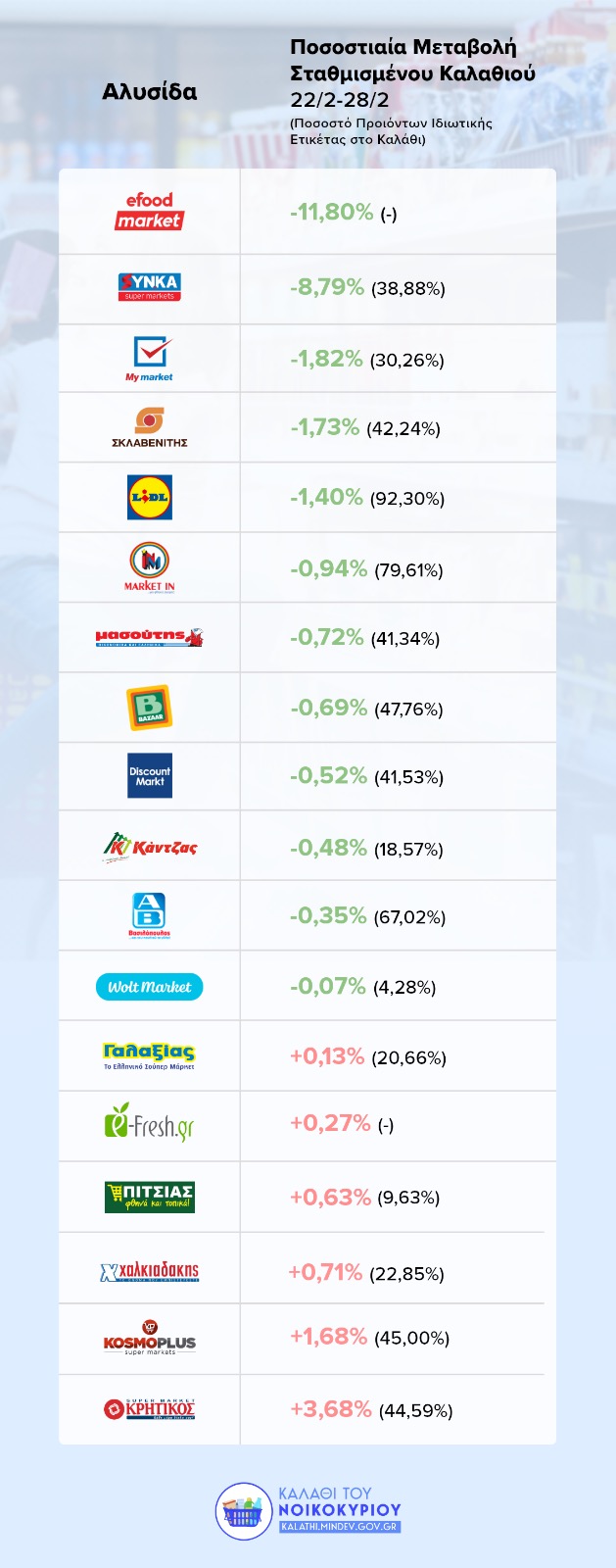 Σε ισχύ από σήμερα η επέκταση στο καλάθι του νοικοκυριού με νέες κατηγορίες προϊόντων και το Καλάθι της Σαρακοστής.