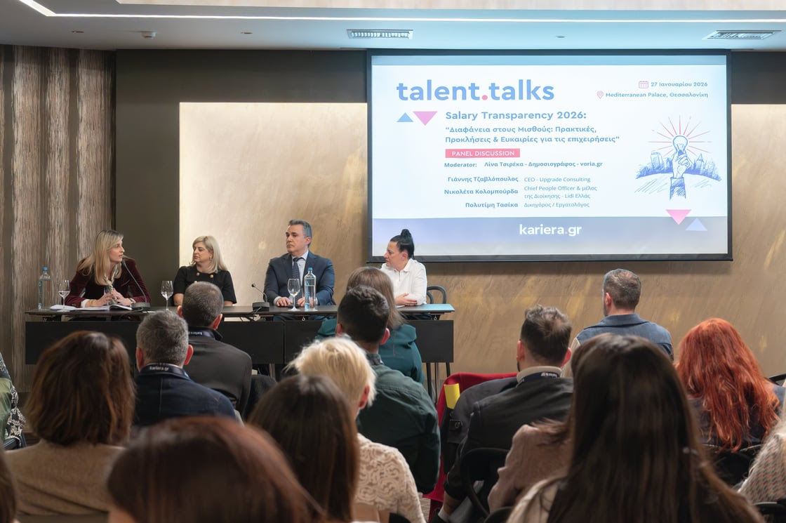Στο πάνελ με τίτλο «Salary Transparency 2026: Ποια είναι η νέα πραγματικότητα για εργαζόμενους και επιχειρήσεις», το οποίο συντόνισε η δημοσιογράφος Λίνα Τσιρέκα, αναλύθηκαν οι αλλαγές που επιφέρει η μισθολογική διαφάνεια στην αγορά εργασίας.