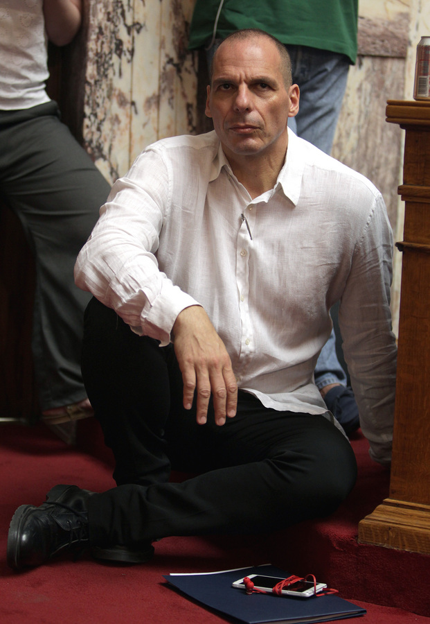 Καθισμένος στο πάτωμα παρακολούθησε την ομιλία Τσίπρα ο Γιάνης Βαρουφάκης