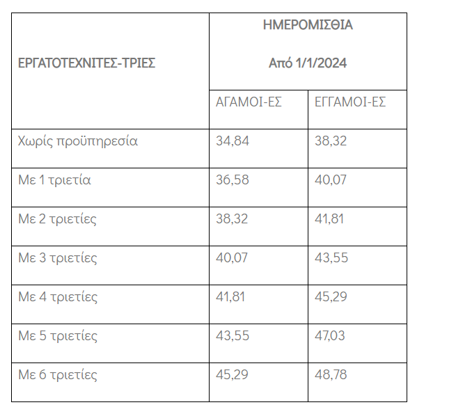 Ακολουθούν οι πίνακες διαμόρφωσης του κατώτατου νομοθετημένου μισθού και ημερομισθίου από 1ης/1/2023: