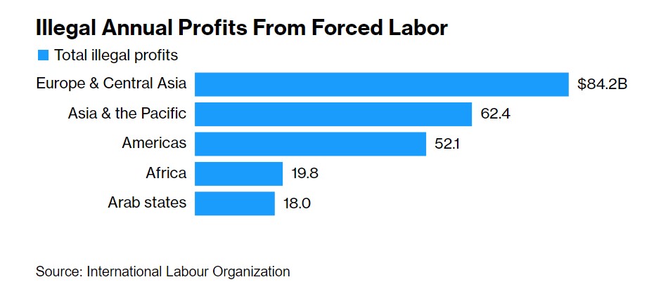 Η καταναγκαστική εργασία στην ιδιωτική οικονομία παράγει 236 δισ. δολ. σε παράνομα κέρδη κάθε χρόνο, σύμφωνα με τη Διεθνή Οργάνωση Εργασίας (ΔΟΕ-ILO).