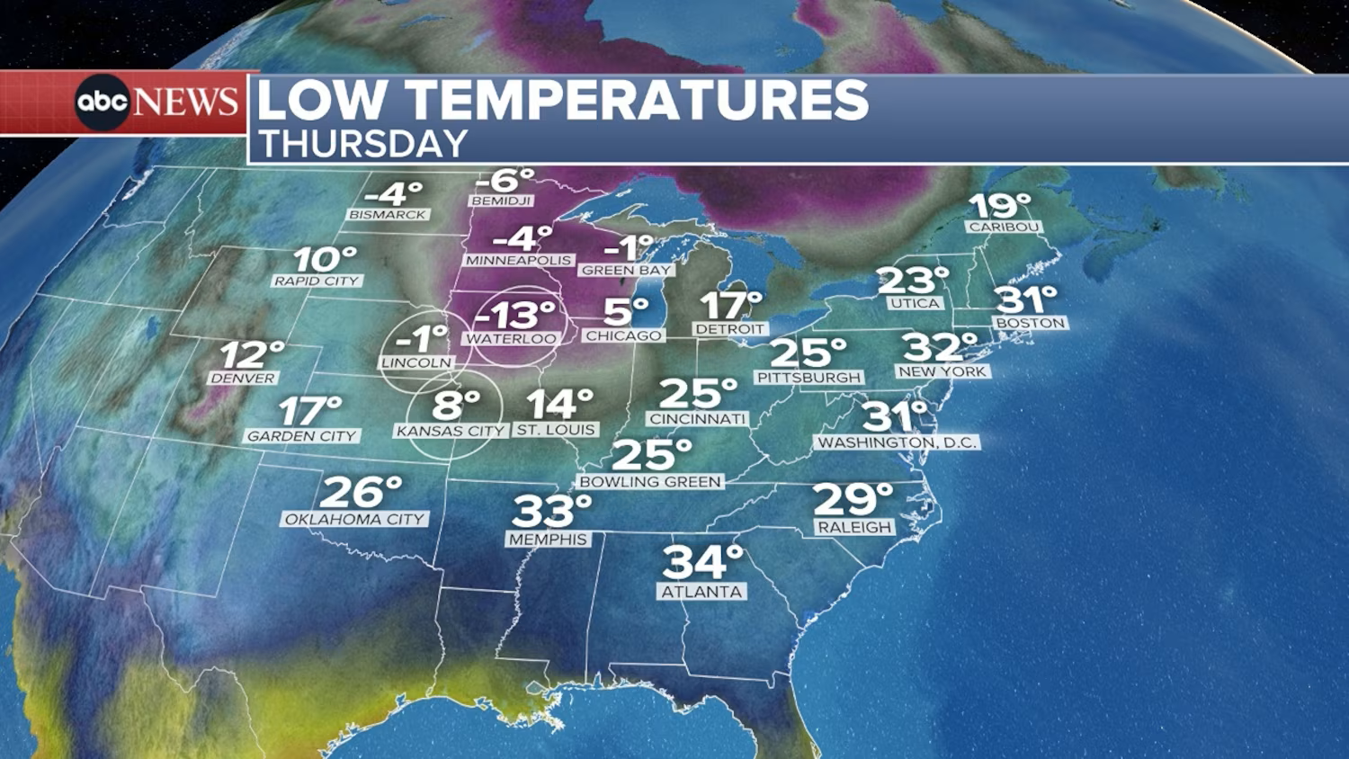 Η Μετεωρολογική Υπηρεσία έχει εκδώσει διαδοχικές προειδοποιήσεις για επικίνδυνα καιρικά φαινόμενα από το Μέιν έως το κεντρικό Κεντάκι, ενώ ορισμένες πολιτείες, όπως το Νιου Τζέρσεϊ, έχουν ήδη κηρύξει κατάσταση έκτακτης ανάγκης λόγω του συνδυασμού παγετού, χιονοπτώσεων και ισχυρών ανέμων. Την ίδια στιγμή, οι μετεωρολογικοί οργανισμοί προειδοποιούν ότι το τρέχον ψυχρό κύμα είναι μόνο το πρώτο από τρία διαδοχικά «επεισόδια πολικής δίνης» που αναμένεται να πλήξουν τις κεντρικές και ανατολικές ΗΠΑ μέχρι τα μέσα Δεκεμβρίου, με νέες εισβολές αρκτικού αέρα να απειλούν όχι μόνο τον βορρά, αλλά και νότιες πολιτείες όπως η Οκλαχόμα, το Άρκανσο, το Μιζούρι και το Τενεσί.