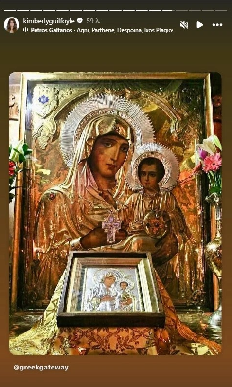 Κίμπερλι Γκιλφόιλ: Ευχές στους Έλληνες για τον Δεκαπενταύγουστο με εικόνα της Παναγίας και… Γαϊτάνο