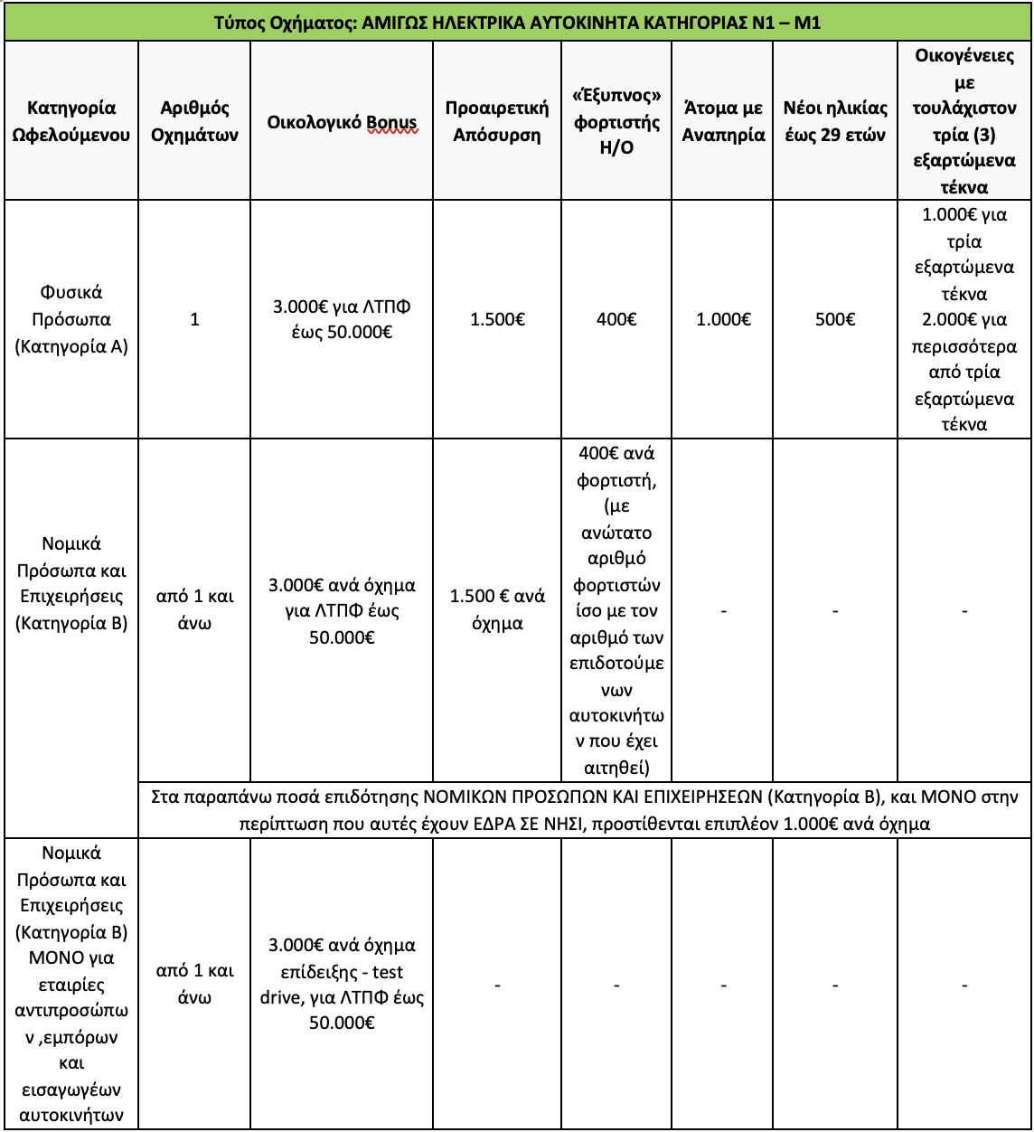 Δεν δικαιούνται επιδότησης ηλεκτρικά οχήματα με λιανική τιμή προ φόρων μεγαλύτερης των 50.000 ευρώ.