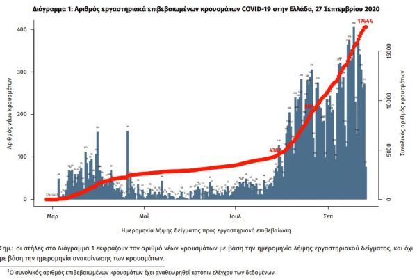 Ειδικότερα, σύμφωνα με ανακοίνωση του Εθνικού Οργανισμού Δημόσιας Υγείας (ΕΟΔΥ), ο συνολικός αριθμός των κρουσμάτων είναι 17.444, εκ των οποίων το 55.8% άνδρες.