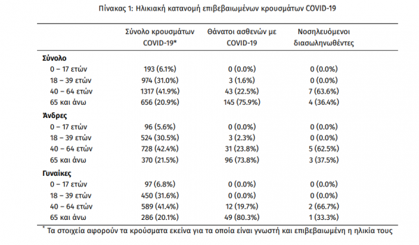 Η διάμεση ηλικία των θανόντων συμπολιτών μας ήταν τα 76 έτη και το 95.8% είχε κάποιο υποκείμενο νόσημα ή/και ηλικία 70 ετών και άνω.