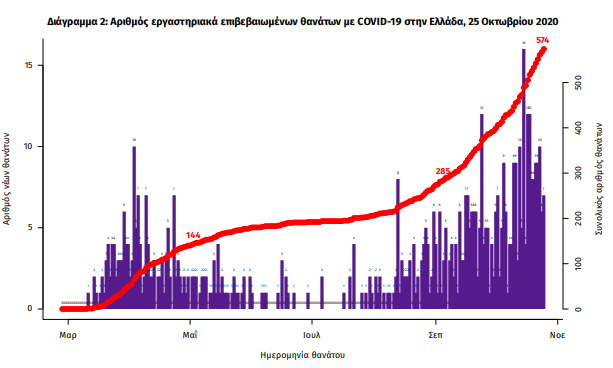 Τέλος, έχουμε 10 ακόμα καταγεγραμμένους θανάτους και 574 θανάτους συνολικά στη χώρα. 217 (37.8%) γυναίκες και οι υπόλοιποι άνδρες.