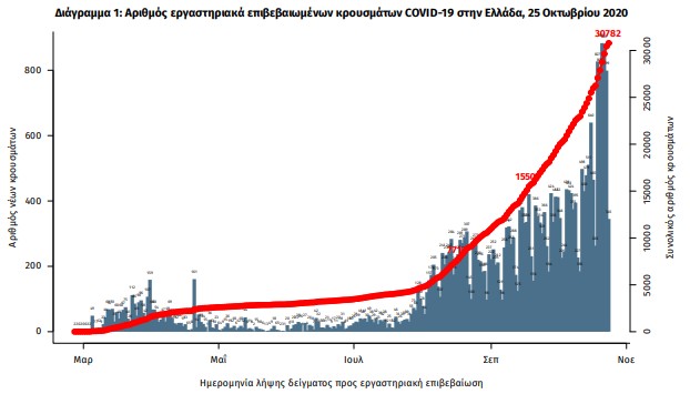 Από αυτά τα κρούσματα 76 συνδέονται με γνωστές συρροές και 29 εντοπίστηκαν κατόπιν ελέγχων στις πύλες εισόδου της χώρας. Ο συνολικός αριθμός των κρουσμάτων είναι 30782, εκ των οποίων το 55.5% άνδρες.