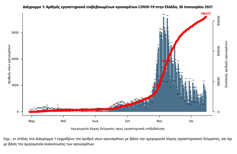 Συγκεκριμένα, σήμερα ανακοινώθηκαν 795 νέα κρούσματα του φονικού ιού, εκ των οποίων 4 εντοπίστηκαν κατόπιν ελέγχων στις πύλες εισόδου της χώρας. Έτσι, ο συνολικός αριθμός των κρουσμάτων ανέρχεται στα 156.473, εκ των οποίων 52.0% άνδρες. Κατά την ιχνηλάτιση βρέθηκε ότι 5.936 (3.8%) θεωρούνται σχετιζόμενα με ταξίδι από το εξωτερικό και 48.939 (63.8%) είναι σχετιζόμενα με ήδη γνωστό κρούσμα.