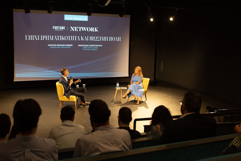 Στο πλαίσιο του Fortune Greece Network, την Πέμπτη 14 Σεπτεμβρίου στον πολυχώρο Άτρακτος, διεξήχθη μία εξαιρετικά ενδιαφέρουσα ανοιχτή συζήτηση για την Επιχειρηματικότητα και τις Βιώσιμες Πόλεις, με τον δήμαρχο Αθηναίων, Κώστα Μπακογιάννη.