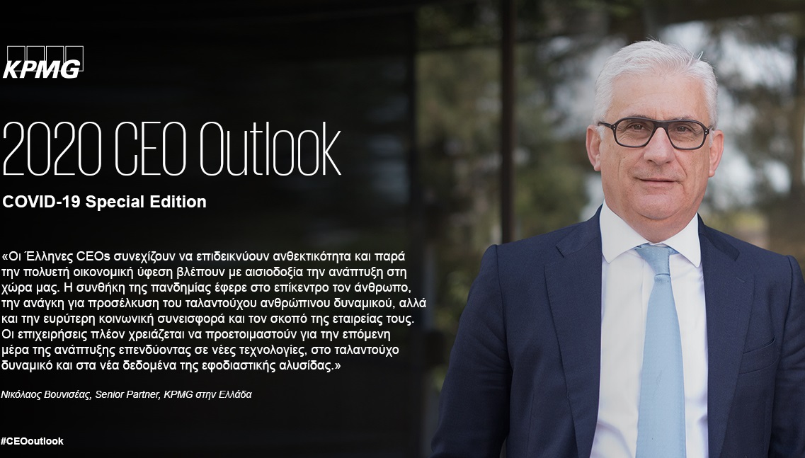 Ο Νίκος Βουνισέας, Senior Partner της KPMG στην Ελλάδα ανέφερε «Οι Έλληνες CEOs συνεχίζουν να επιδεικνύουν ανθεκτικότητα και παρά την πολυετή οικονομική ύφεση βλέπουν με αισιοδοξία την ανάπτυξη στη χώρα μας. Η συνθήκη της πανδημίας έφερε στο επίκεντρο τον άνθρωπο, την ανάγκη για προσέλκυση του ταλαντούχου ανθρώπινου δυναμικού, αλλά και την ευρύτερη κοινωνική συνεισφορά και τον σκοπό της εταιρείας τους. Οι επιχειρήσεις πλέον χρειάζεται να προετοιμαστούν για την επόμενη μέρα της ανάπτυξης επενδύοντας σε νέες τεχνολογίες, στο ταλαντούχο δυναμικό και στα νέα δεδομένα της εφοδιαστικής αλυσίδας.»