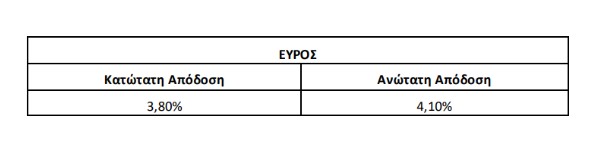 Το εύρος απόδοσης, το οποίο καθορίστηκε από τους Συντονιστές Κύριους Αναδόχους και εντός του οποίου οι Ειδικοί Επενδυτές θα υποβάλλουν τις αιτήσεις κάλυψης Ομολογιών (εφεξής οι «Αιτήσεις Κάλυψης»), είναι το ακόλουθο: