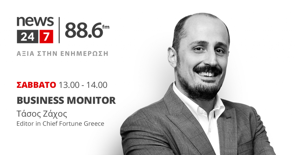 H εκπομπή Business Monitor επιστρέφει αυτό το Σάββατο 13:00 – 14:00 στον «αέρα» του News 24/7 Radio στους 88,6, με τον Τάσο Ζάχο Editor in Chief του FortuneGreece.