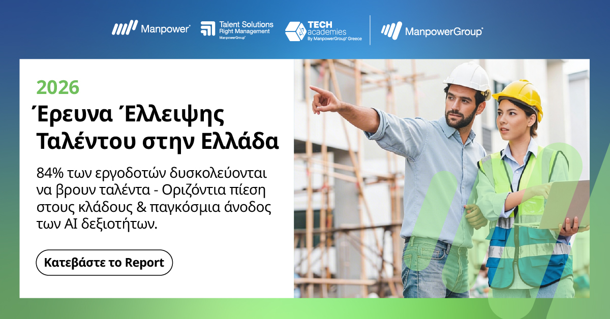 ManPower Group: Έρευνα Έλλειψης Ταλέντου στην Ελλάδα 2026