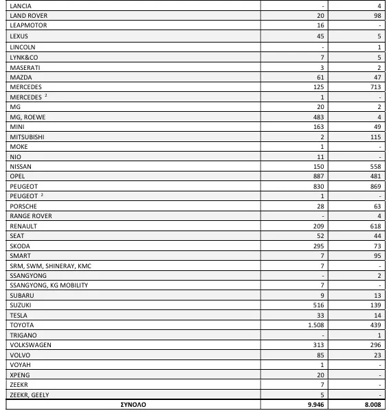 - Τα καινούργια αυτοκίνητα παρουσίασαν μεγαλύτερη πτώση 6,5% (10.807 έναντι 11.563).