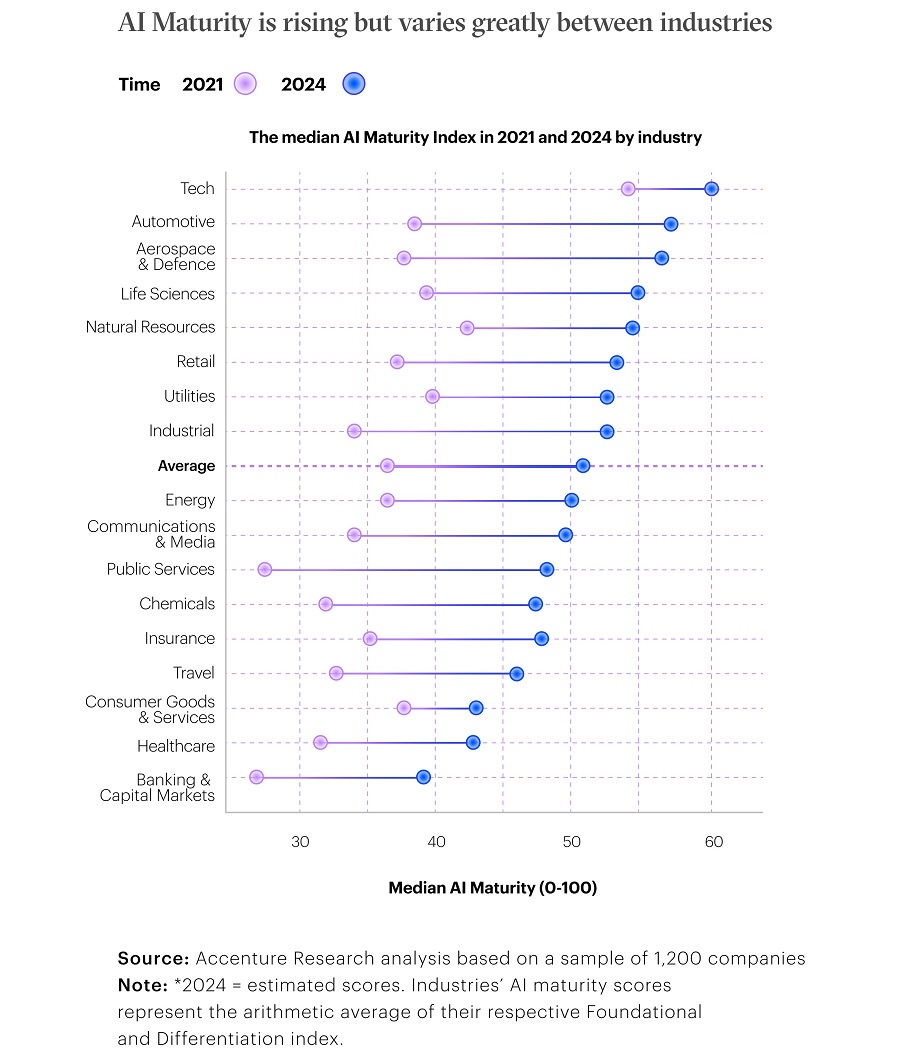 Η μελέτη «The Art of AI Maturity: Advancing from Practice to Performance» παρουσιάζει στρατηγικές για την επιτυχή αξιοποίηση της τεχνητής νοημοσύνης μέσω ενός ολιστικού πλαισίου, το οποίο περιλαμβάνει έναν νέο δείκτη, ο οποίος εκφράζει την ωριμότητα μιας επιχείρησης σε επίπεδο AI σε μία κλίμακα 0-100. Σύμφωνα με τη μελέτη, η ωριμότητα ΑΙ μιας εταιρείας είναι ο βαθμός στον οποίο υπερτερεί έναντι των ανταγωνιστών της όσον αφορά ένα μεγάλο εύρος ικανοτήτων που σχετίζονται με την τεχνητή νοημοσύνη. Αυτές αναφέρονται στην τεχνολογία, όπως ψηφιακά δεδομένα, τεχνητή νοημοσύνη και υπολογιστικό νέφος, καθώς και στην οργανωτική στρατηγική, όπως υποστήριξη από την ανώτατη διοίκηση, ανθρώπινο δυναμικό και κουλτούρα.
