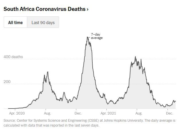Κατά τον Δεκέμβριο, ο μέσος όρος των ημερήσιων κρουσμάτων κορωνοϊού στη Νότια Αφρική ανήλθε στις 23000 περίπου, αριθμός πολύ μεγάλος για τα δεδομένα της χώρας.