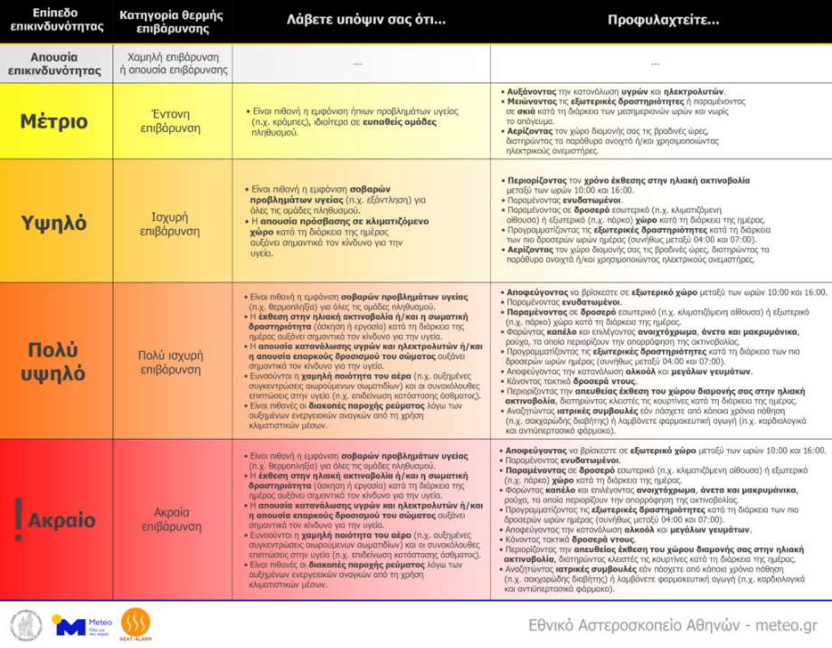Πολύ υψηλές θερμοκρασίες, όπως αυτές που επηρεάζουν την Ελλάδα από τις αρχές της εβδομάδας, αποτελούν σημαντική απειλή για την ανθρώπινη υγεία λόγω της θερμής επιβάρυνσης που προκαλείται στον ανθρώπινο οργανισμό, σύμφωνα με το meteo.