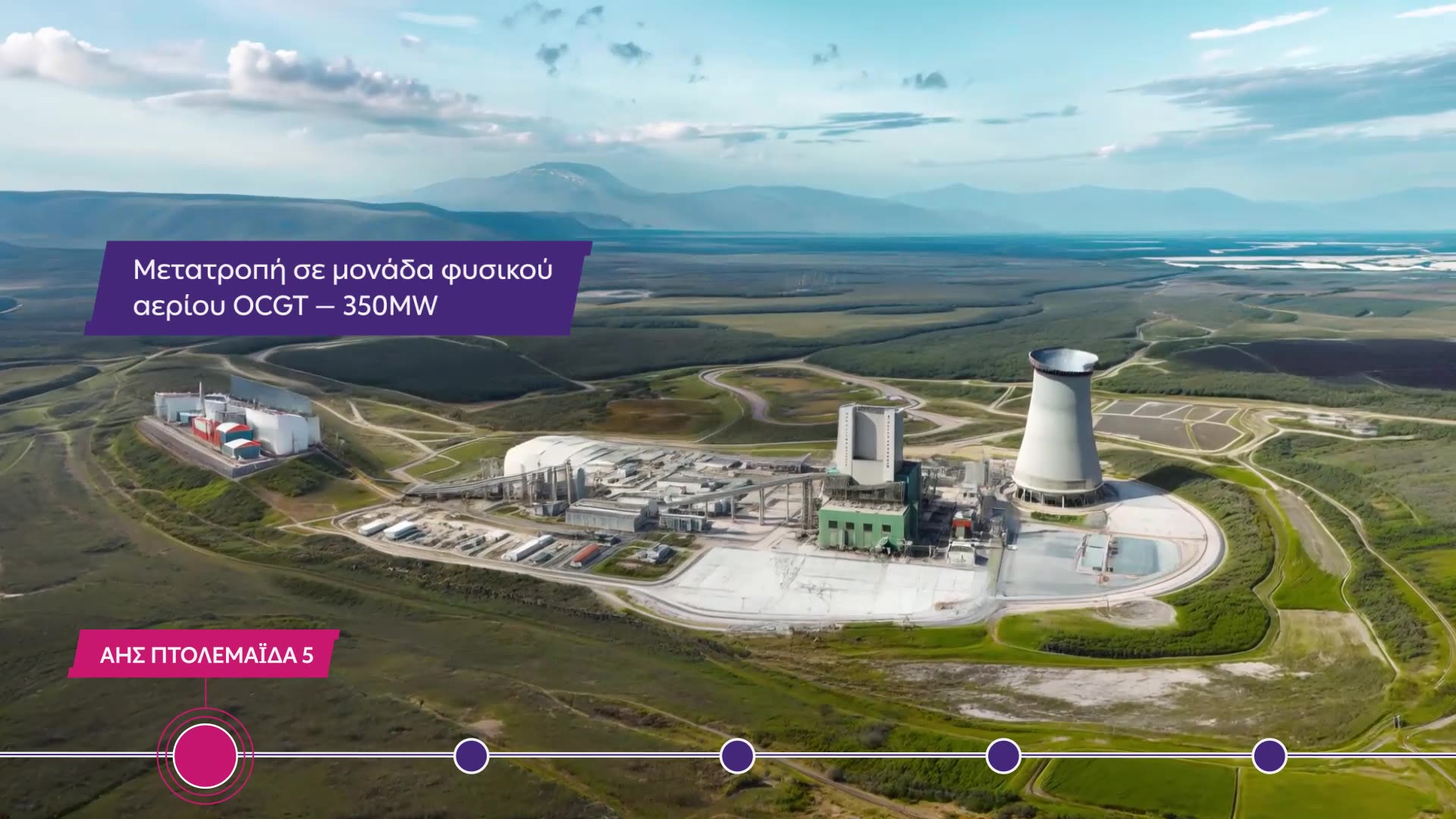 -Μετατροπή της λιγνιτικής μονάδας Πτολεμαίδα 5 σε μονάδα φυσικού αερίου. Η μονάδα θα σταματήσει να καίει λιγνίτη στο τέλος του 2026 και μέχρι το τέλος του 2027 θα μετατραπεί σε μονάδα φυσικού αερίου ανοικτού κύκλου ισχύος 350 MW, με δυνατότητα αναβάθμισης σε μονάδα συνδυασμένου κύκλου 500 MW αρχικά και 1000 μεγαβάτ σε τελικό στάδιο. Κατά τη διάρκεια της μετατροπής της μονάδας σε φυσικό αέριο θα δημιουργηθούν 300 θέσεις εργασίας.