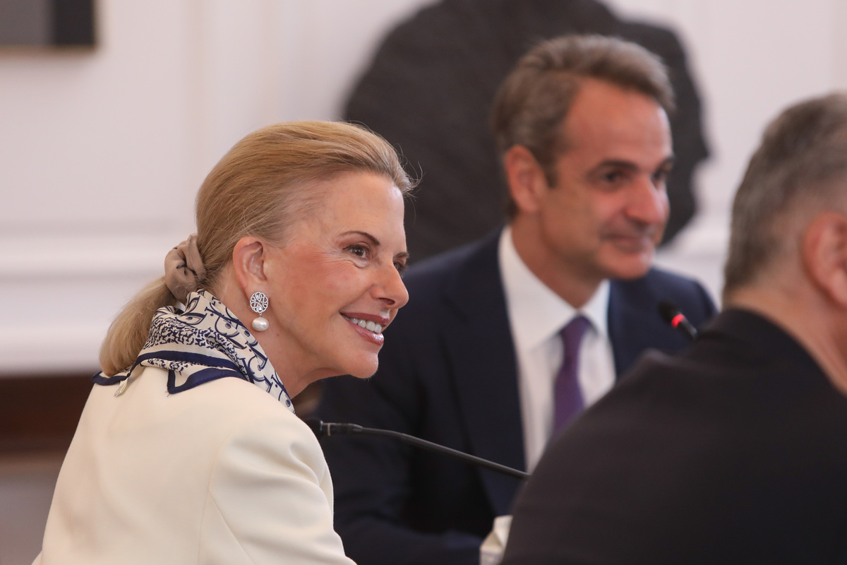 Ο πρωθυπουργός Κυριάκος Μητσοτάκης (Κ) συνομιλεί με τους νέους ευρωβουλευτές της Νέας Δημοκρατίας, στο Μέγαρο Μαξίμου, Αθήνα, Τρίτη 11 Ιουνίου 2024. Τους νέους ευρωβουλευτές της Νέας Δημοκρατίας που εξελέγησαν στις ευρωεκλογές συναντά ο πρωθυπουργός Κυριάκος Μητσοτάκης, στο Μέγαρο Μαξίμου. ΑΠΕ-ΜΠΕ/ΑΠΕ-ΜΠΕ/ΓΙΩΡΓΟΣ ΒΙΤΣΑΡΑΣ