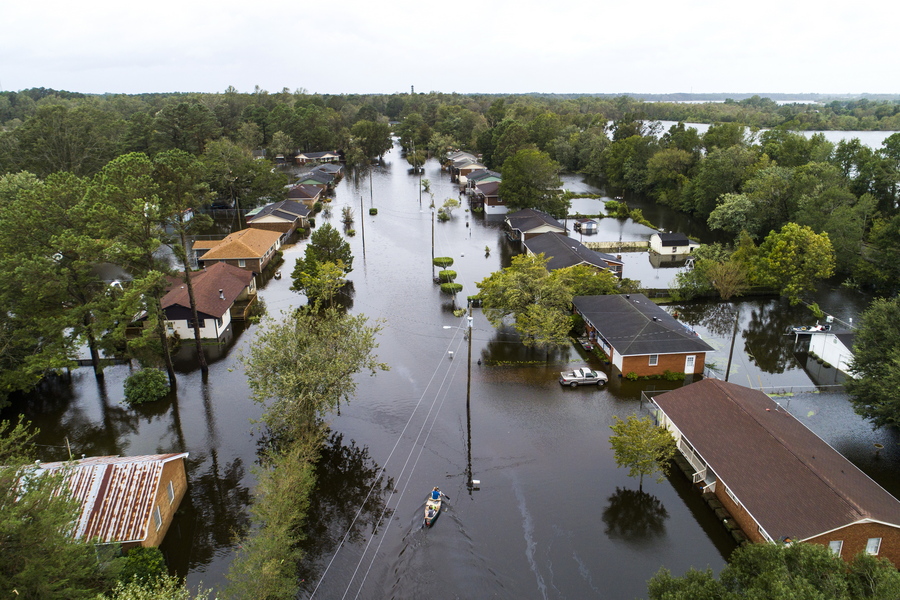 Ένα μέρος της πόλης Νιου Μπερν, με πληθυσμό 30.000 κατοίκων, βρίσκεται κάτω από τα νερά από την Παρασκευή, με αποτέλεσμα να παγιδευτούν εκατοντάδες κάτοικοι. Η τουριστική αυτή πόλη βρίσκεται στη συμβολή των ποταμών Νιούζ και Τρεντ.