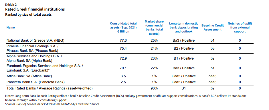 Eιδικότερα, όπως επισημαίνει, «διατηρήσαμε τη θετική μας προοπτική για το τραπεζικό σύστημα της Ελλάδας (σταθερό Ba3) παρά τις δύσκολες οικονομικές συνθήκες και τις πληθωριστικές πιέσεις, που είναι πιθανό να περιορίσουν την οικονομική ανάπτυξη το 2022, με την οικονομία, πιθανώς, να ανακάμπτει το 2023».