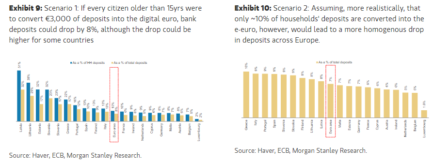 Μέχρι και 50% μπορεί να περιστείλει στις καταθέσεις των νοικοκυριών και των επιχειρήσεων στις ελληνικές τράπεζες το κυοφορούμενο ψηφιακό ευρώ, σύμφωνα με ανάλυση της Morgan Stanley.