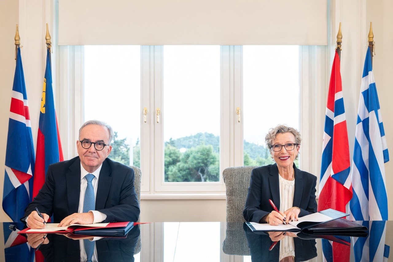Ο Αναπληρωτής Υπουργός ΕΘνικής Οικονομίας και Οικονομικών, Νίκος Παπαθανάσης, υπέγραψε την Παρασκευή 20 Μαρτίου το Μνημόνιο Κατανόησης (MoU) μεταξύ της Ελλάδας και των τριών Δοτριών Χωρών (Νορβηγία, Ισλανδία, Λιχτενστάιν), που εξασφαλίζει νέους πόρους ύψους 143 εκατ. ευρώ για τη νέα προγραμματική περίοδο του Ευρωπαϊκού Οικονομικού Χώρου (EEA Grants) 2021-2028.