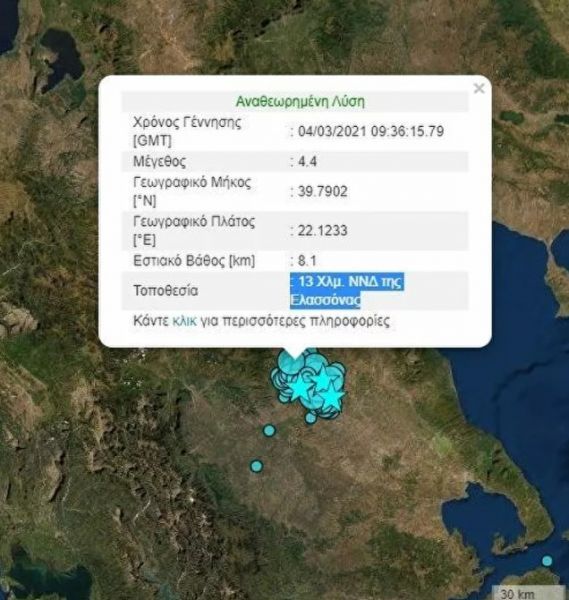 Νέος σεισμός τώρα στην Ελασσόνα