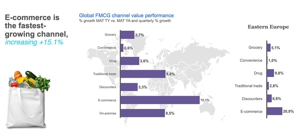 Σχετικά με το E-commerce, ο κ. Δημοράγκας σημείωσε ότι είναι παραμένει το κανάλι με τη μεγαλύτερη ανάπτυξη (+15,1%), προσθέτοντας ότι στην Ελλάδα το ποσοστό αγοράς τροφίμων μέσω του online είναι στο 3%.