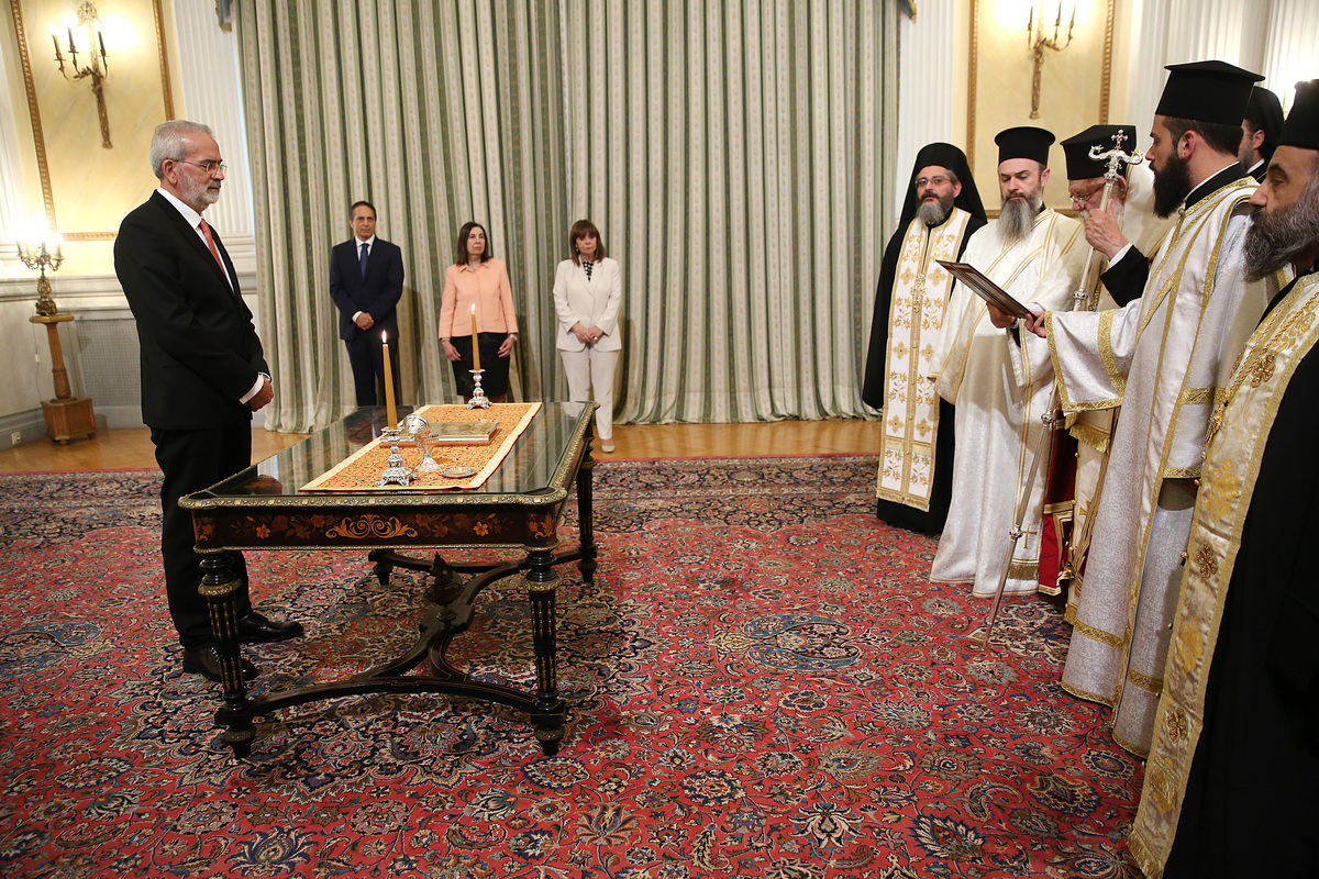 Ενώπιον της Προέδρου της Δημοκρατίας Κατερίνας Σακελλαροπούλου ορκίστηκε υπηρεσιακός πρωθυπουργός ο Ιωάννης Σαρμάς, πρόεδρος του Ελεγκτικού Συνεδρίου.