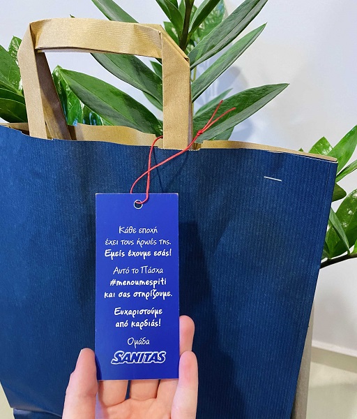 Παράλληλα η SANITAS συνεχίζει την έμπρακτη στήριξη της ΜΚΟ «Μπορούμε», που έχει στόχο τον περιορισμό της σπατάλης τροφίμων και την καταπολέμηση του υποσιτισμού στην Ελλάδα. Έτσι, φέτος το Πάσχα, η SANITAS προσφέρει στο «Μπορούμε» 100.000 μερίδες φαγητού που προορίζονται για συμπολίτες μας που έχουν ανάγκη, ενώ θα διαθέσει και 6.000 προϊόντα συσκευασίας τροφίμων σε φορείς που συνεργάζονται με το «Μπορούμε».
