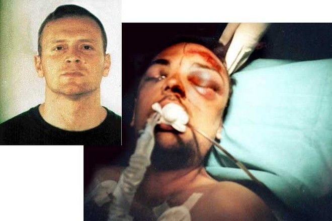 Στη φωτογραφία βλέπετε το φοιτητή τότε Δημήτρη Κουσουρή μετά τον ξυλοδαρμό του σχεδόν μέχρι θανάτου, έξω από την Ευελπίδων.