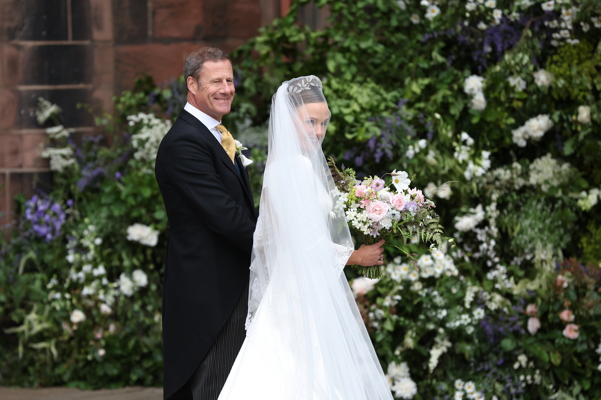 H νέα δούκισσα του Ουέστμινστερ Ολίβια Χένσον (Olivia Henson) έφτασε με ένα νυφικό βγαλμένο από παραμύθι στον Καθεδρικό Ναό του Τσέστερ για να ενωθεί με τα ιερά δεσμά του γάμου με τον δούκα Χιου Γκρόσβενορ (Hugh Grosvenor), o οποίος είναι βαφτισιμιός του βασιλιά Καρόλου και νονός του πρίγκιπα Τζορτζ και του πρίγκιπα Άρτσι.