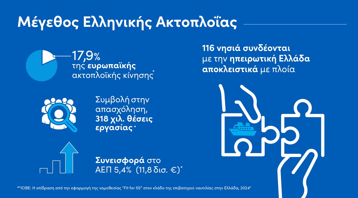 Το γεγονός ότι, από τα 227 κατοικημένα ελληνικά νησιά, τα 116 συνδέονται αποκλειστικά μέσω της ακτοπλοΐας αναδεικνύει τον ρόλο της επιβατηγού ναυτιλίας για τη διακίνηση των κατοίκων τους, τον εφοδιασμό των επιχειρήσεών τους, τη μεταφορά των αναγκαίων προϊόντων και, φυσικά, των τουριστών – δίνοντας αποφασιστική ώθηση και στον πολύτιμο για την ελληνική οικονομία τουρισμό.
