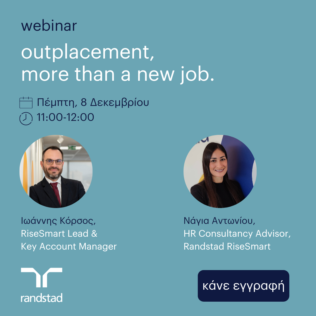 H Randstad, o παγκόσμιος ηγέτης στον κλάδο του ανθρώπινου δυναμικού, διοργανώνει το webinar με τίτλο «outplacement, more than a new job».