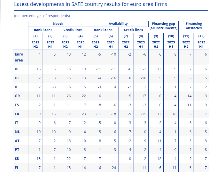 Οι επιχειρήσεις στην Ελλάδα καταγράφουν τα μεγαλύτερα χρηματοδοτική εμπόδια στην Ευρωζώνη, σύμφωνα με έκθεση της Ευρωπαϊκής Κεντρικής Τράπεζας για την πρόσβαση των επιχειρήσεων στη χρηματοδότηση (SAFE).