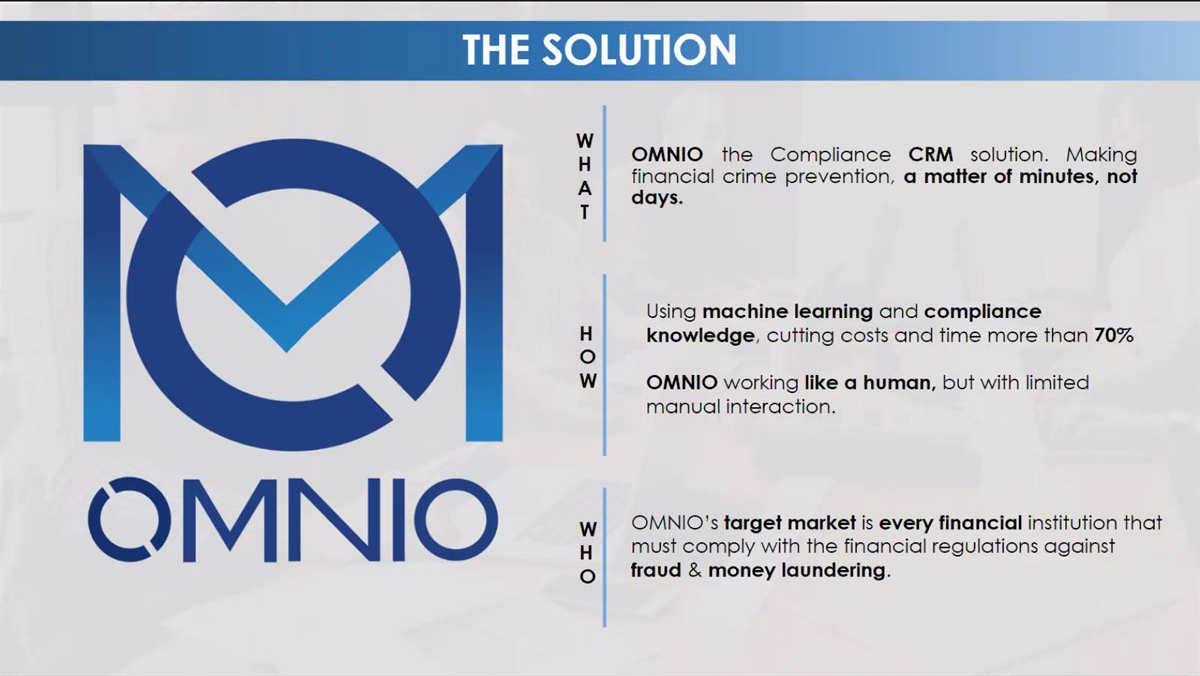 Omnio (Βουλγαρία) – μια λύση που υποστηρίζεται από ML και AI για ελέγχους συμμόρφωσης, αυτοματοποίηση του ελέγχου πελατών, προσπάθειες κατά της νομιμοποίησης εσόδων από παράνομες δραστηριότητες και ελέγχους απάτης.