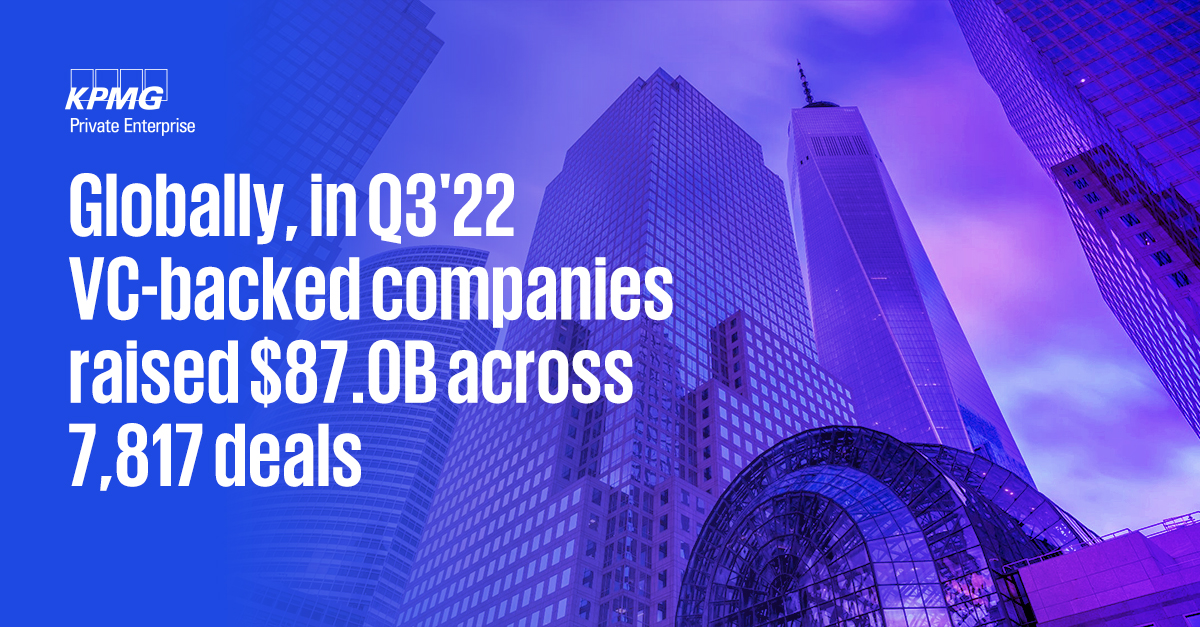 Σύμφωνα με την έκδοση του Venture Pulse του γ’ τριμήνου του 2022 —την τριμηνιαία έκθεση που δημοσιεύεται από την KPMG Private Enterprise, που περιέχει αναλύσεις σε σχέση με βασικές συναλλαγές και τάσεις VC παγκοσμίως, η παγκόσμια χρηματοδότηση των κεφαλαίων επιχειρηματικών συμμετοχών υψηλού ρίσκου (Venture Capital – VC) έπεσε σε χαμηλό εννέα τριμήνων στα US$ 87 δισ. το γ’ τρίμηνο του 2022, επίπεδα που έχουμε να δούμε από το 2020 στην αμερικανική ήπειρο, την Ευρώπη και την Ασία. Η μείωση του αριθμού των συναλλαγών έγινε ακόμη πιο αισθητή κατά τη διάρκεια του τριμήνου, με μόλις 7 817 συναλλαγές VC παγκοσμίως, ο μικρότερος αριθμός από το δ’ τρίμηνο του 2017.