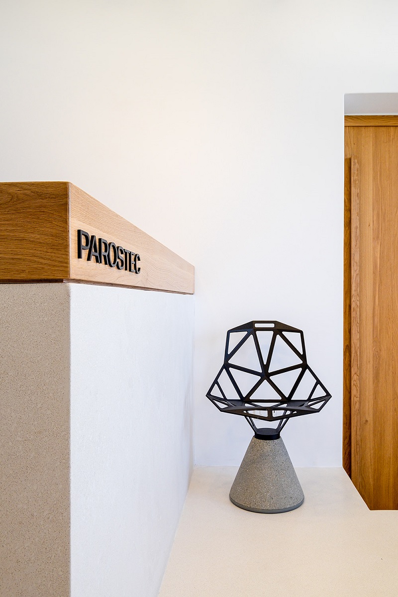 Βασικός στόχος του συγκεκριμένου έργου, πλην της προφανούς στέγασης των γραφείων και της λειτουργικότητας του χώρου, ήταν να αποδοθεί ο χαρακτήρας και η ποιότητα εργασιών της PAROSTEC.