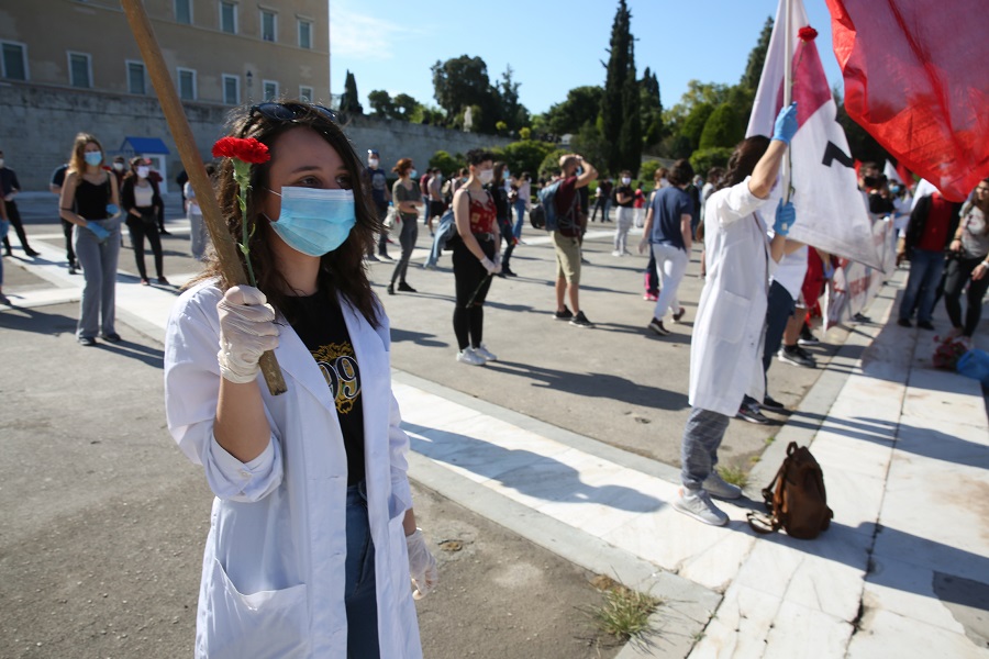 Στη συμβολική εκδήλωση στην Αθήνα μίλησε επίσης ο Ηλίας Σιώρας, πρόεδρος του Σωματείου Εργαζομένων στο Νοσοκομείο “Ευαγγελισμός” και αντιπρόεδρος της ΕΙΝΑΠ, ο οποίος τόνισε ότι οι εργαζόμενοι έχουν διπλό αγώνα: «Να μείνουμε γεροί παλεύοντας για ένα αποκλειστικά δημόσιο δωρεάν σύστημα Υγείας, το μόνο ικανό να αντιμετωπίσει κάθε πανδημία. Να εμποδίσουμε αντιλαϊκά μέτρα που η ΕΕ, το κεφάλαιο και οι αστικές δυνάμεις σχεδιάζουν εκμεταλλευόμενοι στο έπακρο την πανδημία».