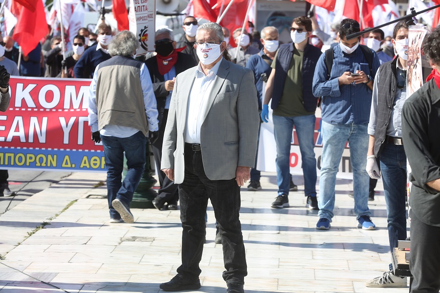 Και ο Κουτσούμπας με μάσκα στη συγκέντρωση του ΠΑΜΕ