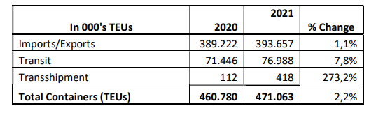 Το 2021 σε σύγκριση με το 2020, το επίπεδο δραστηριότητας σε διακίνηση φορτίων αυξήθηκε για τον Σταθμό Εμπορευματοκιβωτίων:
