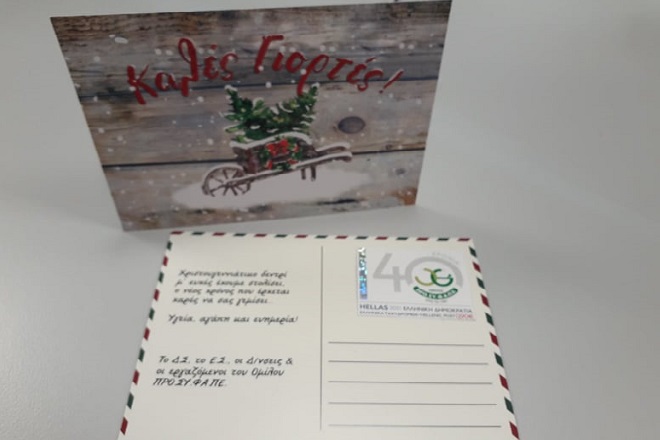 Το “κέρασμα” συνόδευε και μια προσωπική για τον κάθε παραλήπτη καρτ ποστάλ, με γραμματόσημο το λογότυπο 40 χρόνων του ομίλου, μια επετειακή έκδοση σε συνεργασία με τα Ελληνικά Ταχυδρομεία-ΕΛΤΑ.