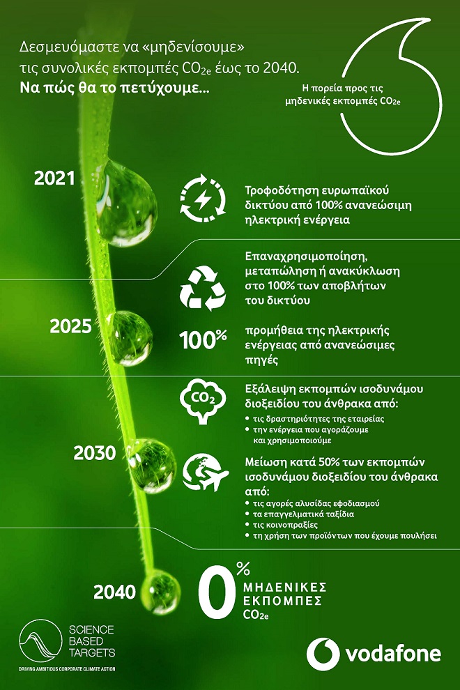 Όμιλος Vodafone: Δέσμευση για μηδενικές εκπομπές ισοδυνάμου διοξειδίου του άνθρακα CO2e έως το 2040